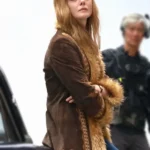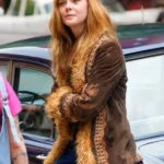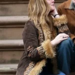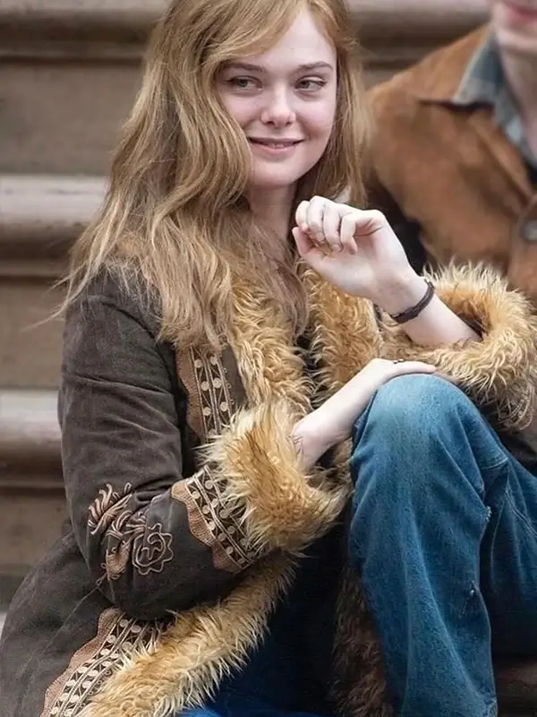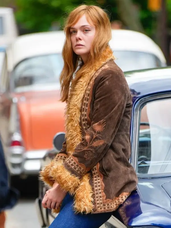 Sylvie Russo TV Series A Complete Unknown 2024 Elle Fanning Brown Fur Suede Embroidered Jacket