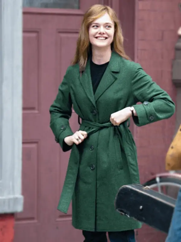 Elle Fanning TV Series A Complete Unknown 2024 Sylvie Russo Green Wool Coat