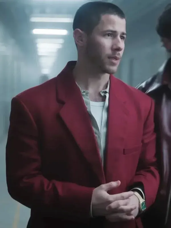 Movie A Very Jonas Christmas 2025 Nick Jonas Red Blazer