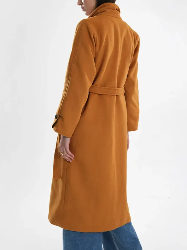 Stay warm and sophisticated this season with the Natalie Hall brown trench coat, inspired by the movie A Wild West Christmas. Made from premium wool fabric, this long coat features a belted waist and classic buttoned closure for a flattering fit. Its timeless design and earthy brown tone make it a must-have for any festive winter ensemble.