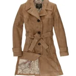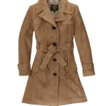 Amelia W21C002 Trench Leather Coat is out hottest assortments of leather jackets this winter. Made from a soft faux leather. The jacket has a lot of new features, include such as inner shell lining, 2 front and an interior pocket plus a leather belt. Moreover, it is slim fit. This jacket is adaptable and ideal for cold and harsh weather.