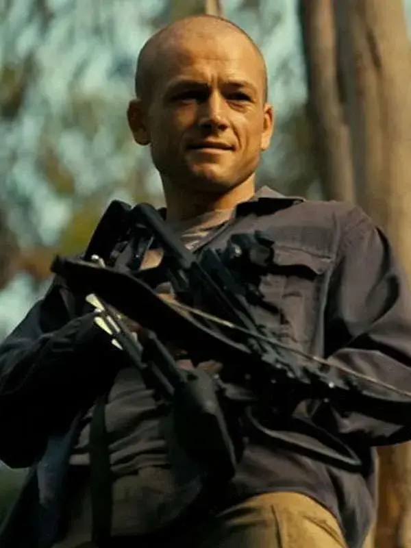 Styled by Taron Egerton in the movie Apex, this jacket is made using cotton fabric, soft viscose lining, full length sleeves, button closure, buttoned cuffs, a shirt style collar, three outside pockets, one inside pocket, and a dark navy color. Perfect for smart casual occasions, travel wear, and everyday refined styling needs.