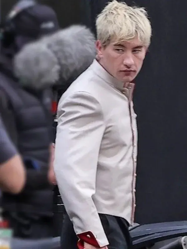 Barry Keoghan brings subtle power and mystery as Ormon in Crime 101. The film is a tense crime thriller about high‑stakes heists and cunning rivalry. This white jacket made from soft cotton with a viscose lining offers breathable comfort. The button‑front and stand‑up collar combine sleek style and casual flair for streetwear or movie nights.