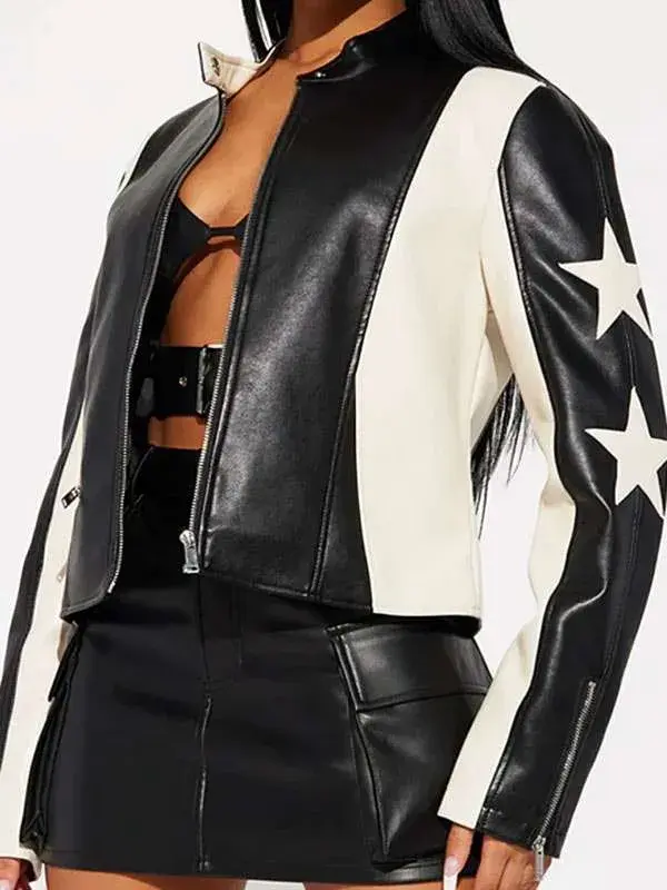 Seen on Chelsea Hamilton in Beyond The Gates series, this black jacket offers genuine leather construction, soft viscose inner, full length sleeves, zipper style cuffs, snap tab collar, and zipper closure, completed with one outside pocket and one inside pocket. It works well for casual styling, edgy fashion, and series inspired confidence.