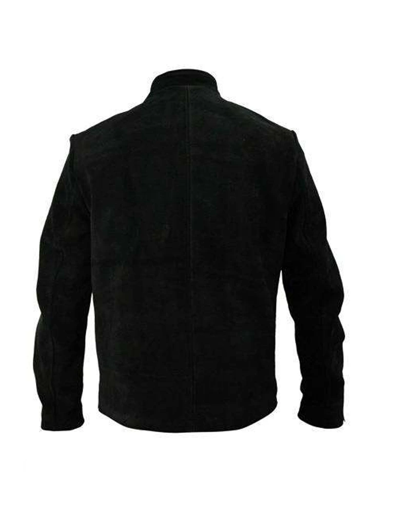 Men’s Stylish Black Suede Cafe Racer Leather Jacket