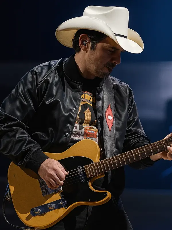 A Grand Ole Opry Christmas Brad Paisley Bomber Jacket delivers a stylish blend of comfort and cinematic appeal, featuring premium satin fabric, soft viscose lining, ribbed detailing, and a classic bomber silhouette inspired by festive screen fashion for effortless casual wear and seasonal versatility.