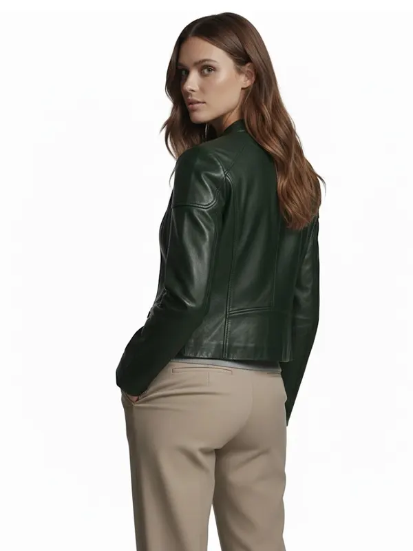 Women’s Caitlin Scuba Genuine Dark Green Leather Jacket