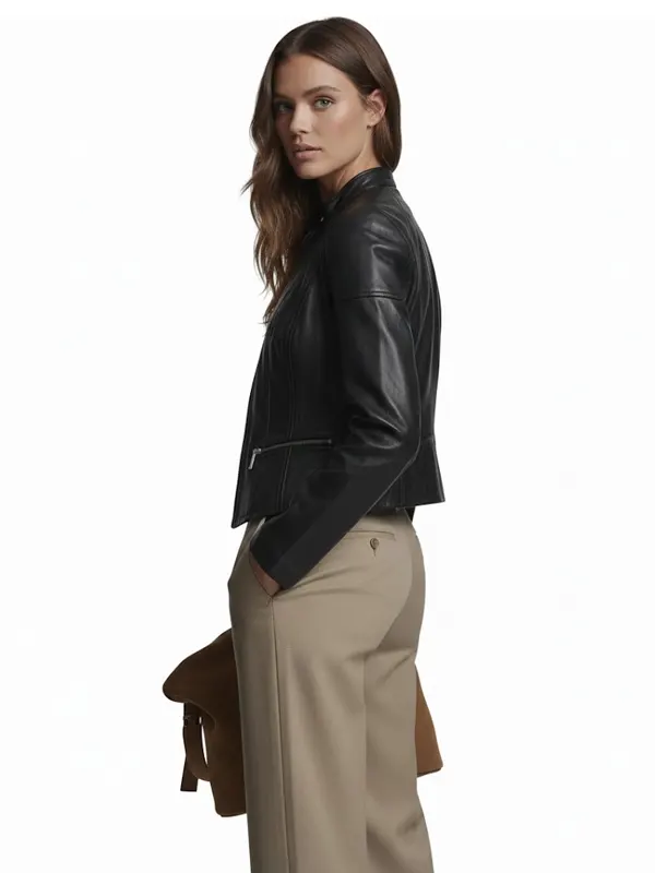 This jacket offers a sleek, fitted silhouette inspired by modern scuba-style designs. Crafted from premium leather, it features smooth lining, detailed stitching, a front zipper, and structured panels for a flattering shape. It is perfect for casual wear, evening outings, and anyone seeking a contemporary, body-contouring leather jacket.