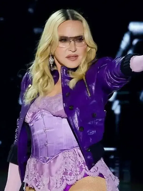 Coachella 2026 Music Festival Madonna Purple Bomber Cropped Jacket