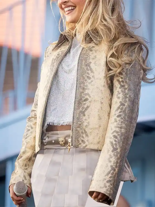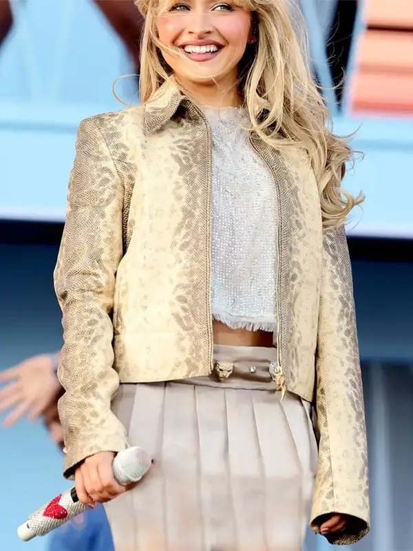 Created for fans of bold festival style, this Sabrina Carpenter leather jacket brings a refined edge with genuine leather craftsmanship and a clean shirt collar. Its zip closure, full sleeves, and dual pockets keep the look structured, making it a perfect match for the Sabrina Carpenter Moto Leather Jacket vibe.