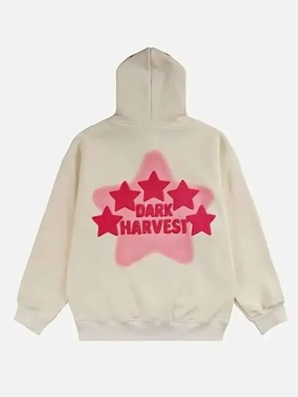 Dark Harvest Star Print Beige Pullover Hoodie