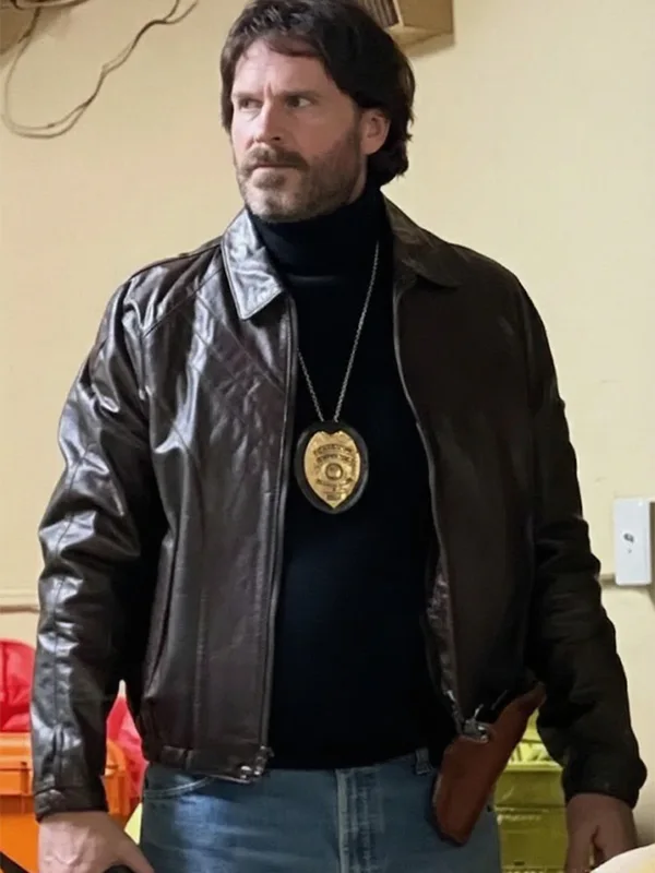 Michael Grable Movie Dead Man’s Wire 2025 Cary Elwes Dark Brown Leather Jacket