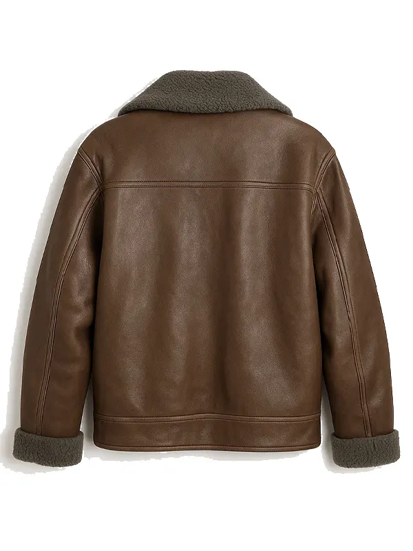 Inspired by Emma Mackey in the movie Ella McCay, this jacket features a genuine leather exterior, shearling lining, zipper closure, shearling cuffs and collar, and practical pockets. Many Ella McCay love styling the Emma Mackey Brown Coat for a more elevated winter look.