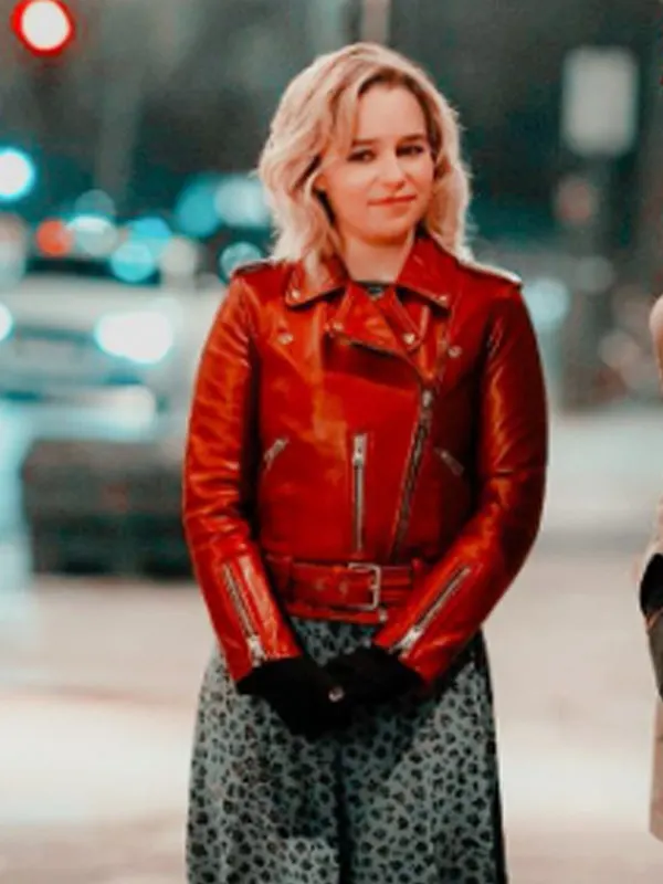 Emilia Clarke stars as Kate in this festive romantic comedy set in London at Christmastime. The film weaves discovery, music, and second chances into a holiday backdrop. This red jacket is crafted from premium material, offers a flattering cut and brilliant colour perfect for winter brunches, holiday dates, or bold seasonal style.