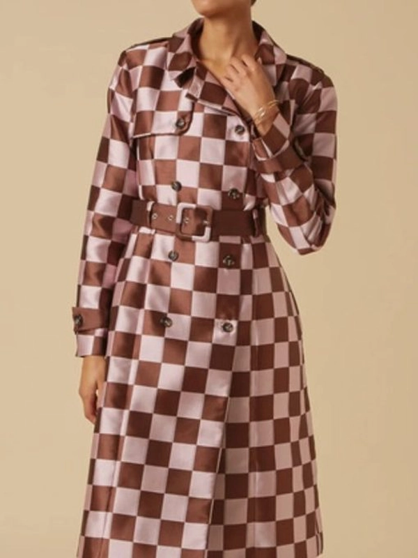 This checked coat is styled by Emily Cooper in the TV series Emily in Paris, it features cotton fabric and soft viscose lining it feels comfortable. Great for casual outings city walks, similar to this many Emily in Paris fans also love styling Emily Cooper Green Printed Coat for more elevated fashion.