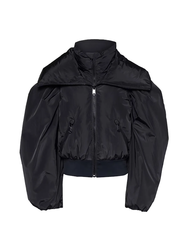 This ski jacket worn by Camille in the Emily in Paris series features a polyester exterior, a soft viscose inner, full sleeves, zipper closure, elastic cuffs, a stand collar, two outside pockets, and one inside pocket. It is perfect for adventurous winter trips and skiing occasions.