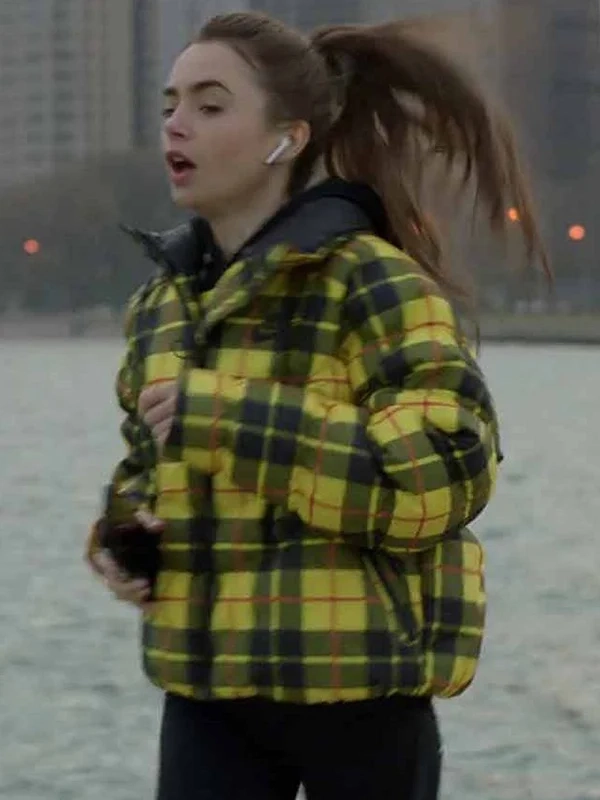 This jacket inspired by Emily Cooper from the Emily in Paris series is made using parachute fabric exterior and inner viscose lining. It features zip closure, open hem cuffs, a stand collar, and multiple pockets. It is great for lightweight, layering and outdoor activities.