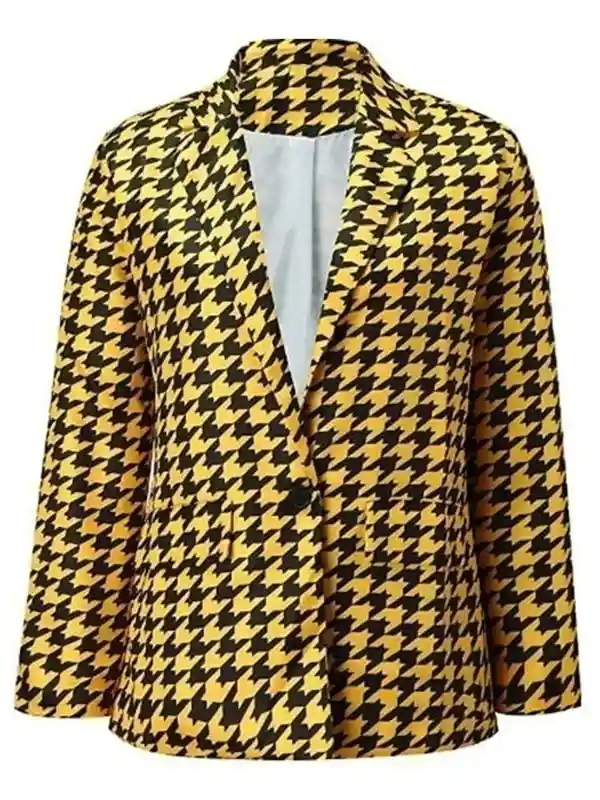 This Printed Blazer styled by Emily Cooper in the TV series Emily in Paris features a suiting fabric, viscose lining, full sleeves, button closure, and a lapel collar. Ideal for daytime outings and fashion events, this blazer offers polished charm and vibrant flair suited for stylish city looks and memorable occasions.