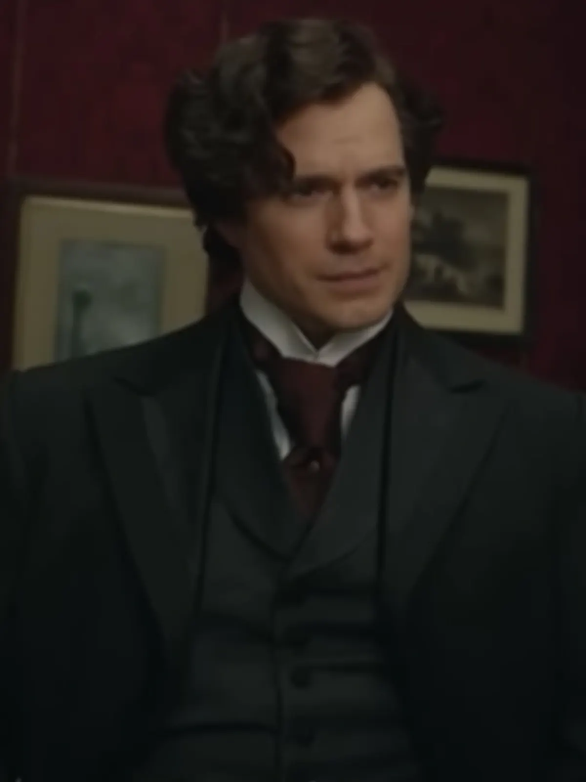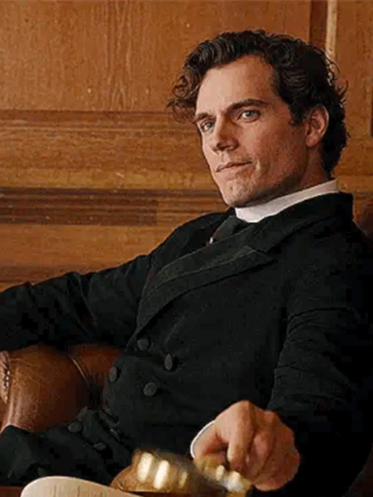 Henry Cavill plays Sherlock Holmes in Enola Holmes, a clever and charming detective in a whimsical and mysterious Victorian world. This black trench coat made from a wool blend offers warmth, classic button closure, and a lapel collar. Ideal for winter evenings, detective-inspired costumes, or elegant layering.