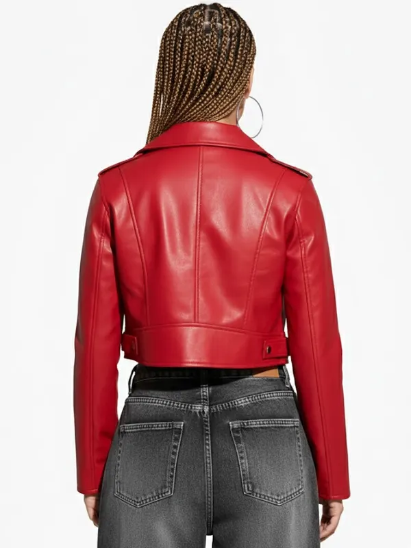 Be the first to review “Essential Cropped Moto Red Leather Jacket”