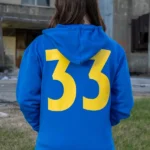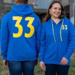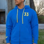 Unisex Fallout Vault 33 Zip-Up Blue Hoodie