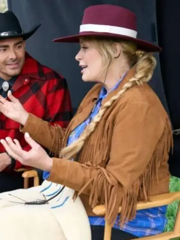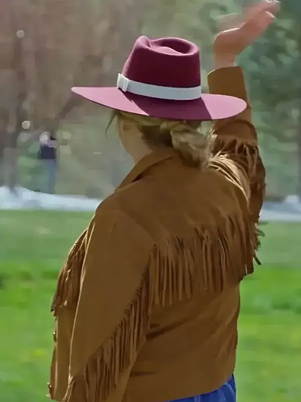 This Fringe Brown Suede Jacket, styled by Melissa Peterson in the Finding Mr. Christmas TV show, is crafted with suede leather. It features an inner viscose lining, full length sleeves, button cuffs, two external waist pockets plus one inside, and a stylish shirt style collar, an ideal match to improve your look.
