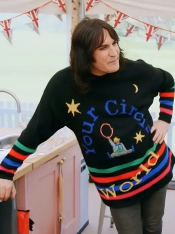 Noel Fielding, the quirky comedian and co-host of The Great British Bake Off, brings his surreal charm and playful energy to every show. This black sweater, made from soft knit fabric, is warm, comfy, and timeless. Ideal for cozy evenings or channeling Noel’s whimsical style.