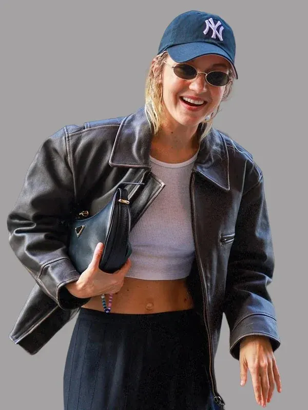 American Model Gigi Hadid Dark Brown Genuine Leather Jacket