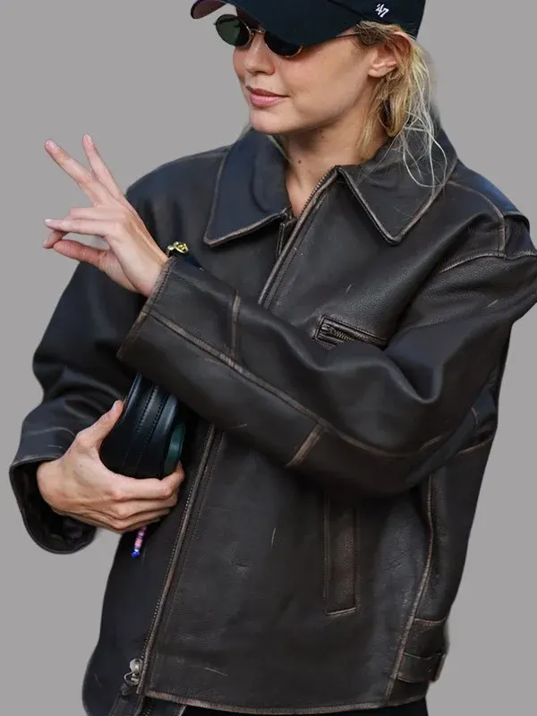 Be the first to review “Gigi Hadid Dark Brown Leather Jacket”