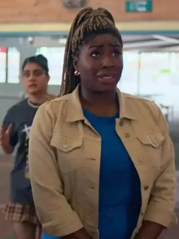 Styled by Chika Ikogwe in the Heartbreak High series, this light brown jacket is tailored using denim, smooth viscose lining, full length sleeves, buttoned cuff, shirt style collar, and button closure with four outside pockets and two inside pockets. It complements casual fashion and comfortable everyday wardrobes.