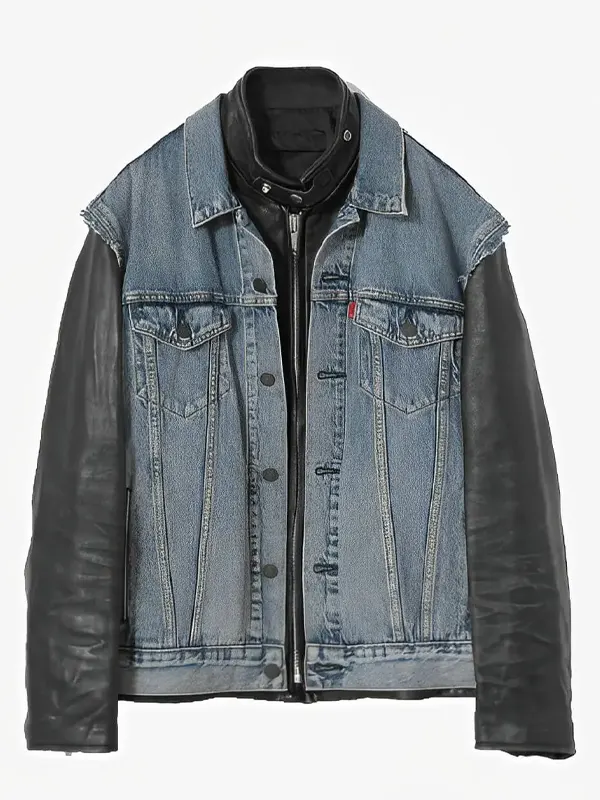 Channel your inner rockstar with the Stranger Things Eddie Munson Hellfire Club Jacket. This unique outerwear features a blue denim vest overlaying premium black leather sleeves, perfectly capturing the 80s metal aesthetic. With the iconic Hellfire Club logo emblazoned on the back, it is the ultimate piece for fans wanting to relive the epic moments of Season Four.