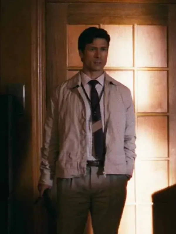 The Glen Powell Beige Cotton Jacket from How To Make A Killing movie is tailored using cotton fabric, soft viscose inner, full length sleeves, buttoned cuffs, shirt style collar, and zipper closure, including two outside pockets and two inside pockets. It is ideal for hangout with friends, travel styling, and everyday outfits.