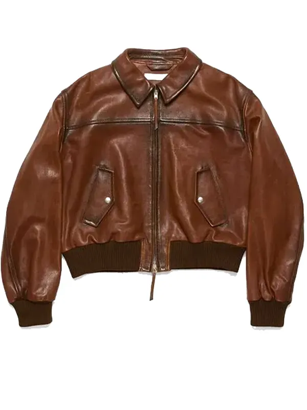 This brown leather jacket worn by Charlie Brown in the I Love LA series features genuine leather exterior, soft viscose lining, full length sleeves, zipper closure front, ribbed cuffs, shirt style collar, two outside pockets, two inside pockets, brown color, great for street style, parties, confidence.
