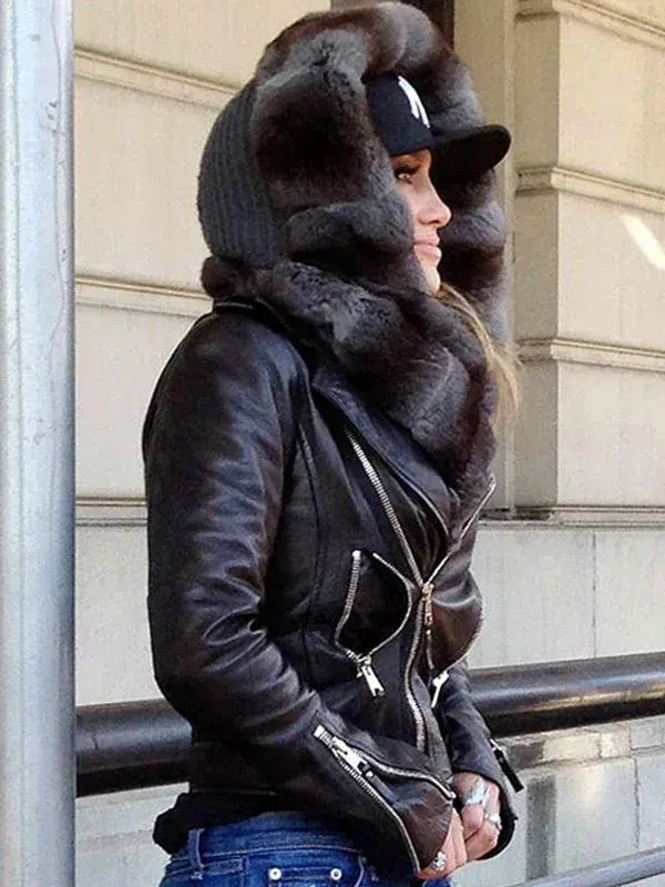 This jacket styled by Jennifer Lopez pairs genuine leather with a viscose inner for all day comfort. The lapel collar, zipper front, and full sleeves keep the design sharp, while two outer pockets add practical ease.