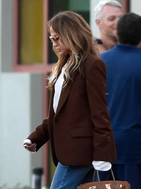 American Actress Jennifer Lopez Street Style Brown Blazer