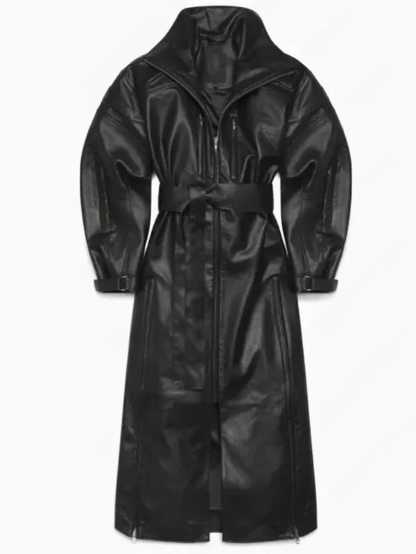Kylie Jenner Khy Black Genuine Leather Trench Long Coat