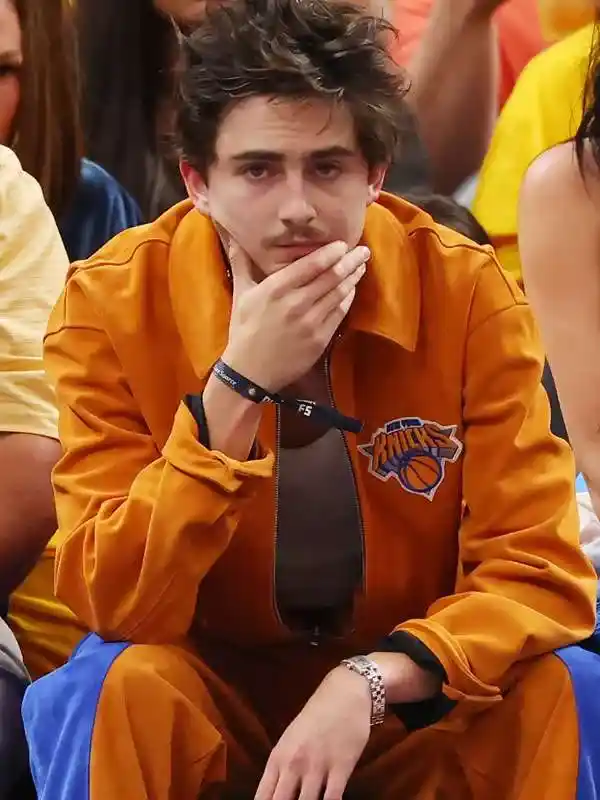 Knicks Game Timothée Chalamet Orange Jacket
