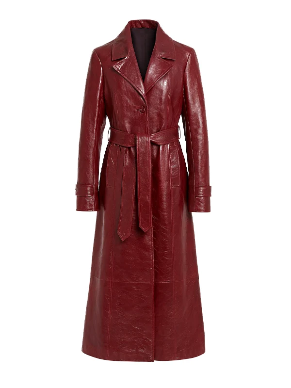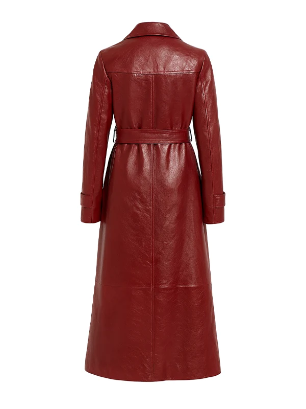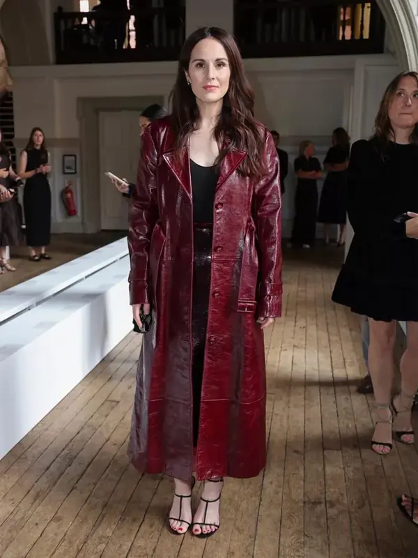 This Maroon Leather Long Coat is inspired by Michelle Dockery’s front row glamour at London Fashion Week 2025. This piece features supple leather, a longline cut, tailored shoulders, and neat stitching for a refined, classic silhouette that is perfect for completing your look while also maintaining comfort.