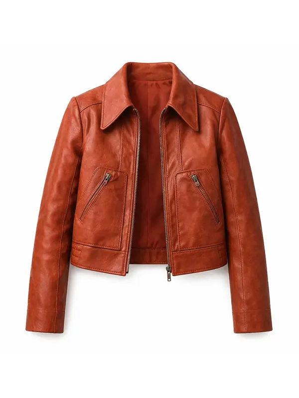 Margo Millet TV Series Margo’s Got Money Troubles 2026 Elle Fanning Orange Faux Leather Jacket
