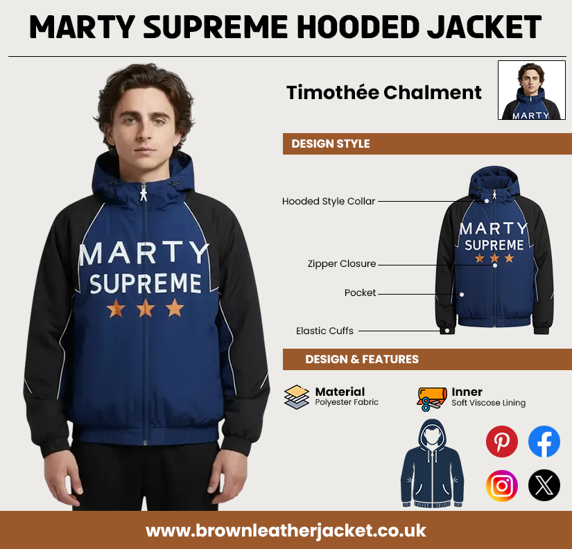 The Marty Supreme Hooded Jacket is perfect for cool weather. The hood sits nicely and the overall design feels modern. I wear it almost daily and stay comfortable.