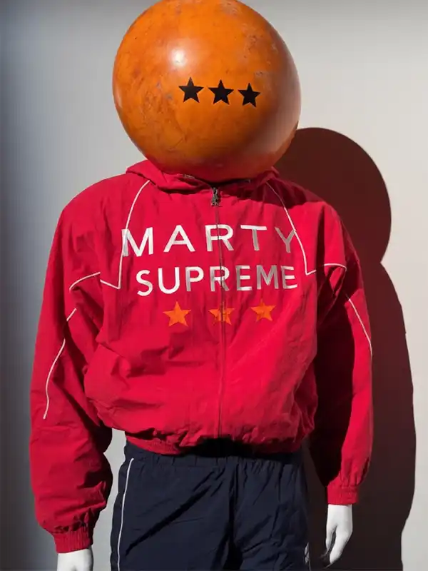 Marty Supreme Red Jacket is made using cotton polyester, soft viscose lining, full length sleeves, zipper closure, elastic cuffs, hooded style collar, two outside pockets, one inside pocket, and red color. It is suitable for casual wear, travel, outdoor days, street fashion, daily use, lightweight comfort, modern looks, youthful energy, and versatile styling seasons.