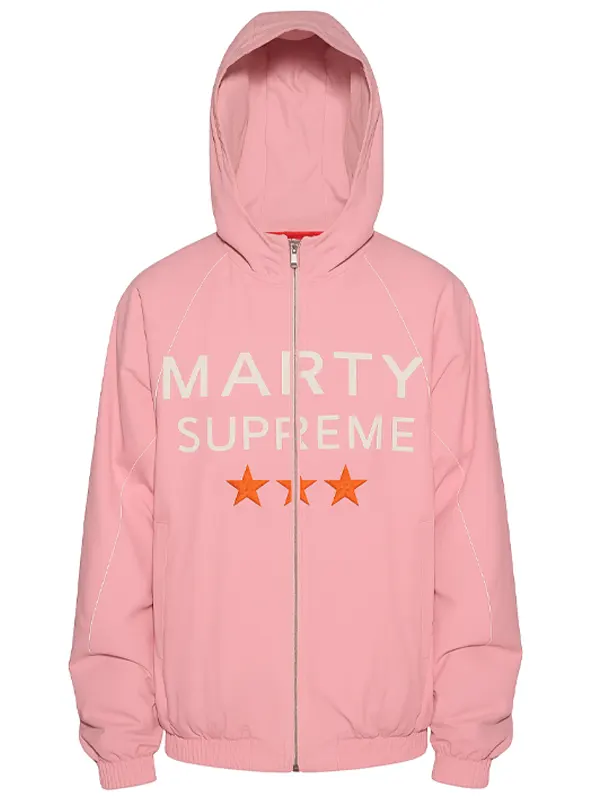 Timothée Chalamet brings lively charm to Marty Supreme 2025 as Marty Mauser, and his pink hoodie jacket reflects the film’s bold modern style. This piece features soft fabric, a warm interior, and a relaxed fit, making it perfect for daily wear, fan events, and anyone wanting a standout yet comfortable fashion statement.
