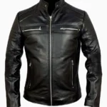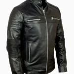 Mens Stylish Biker Black Cafe Racer Leather Jacket