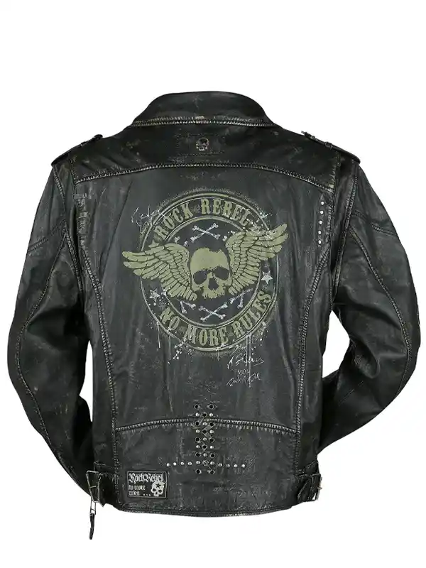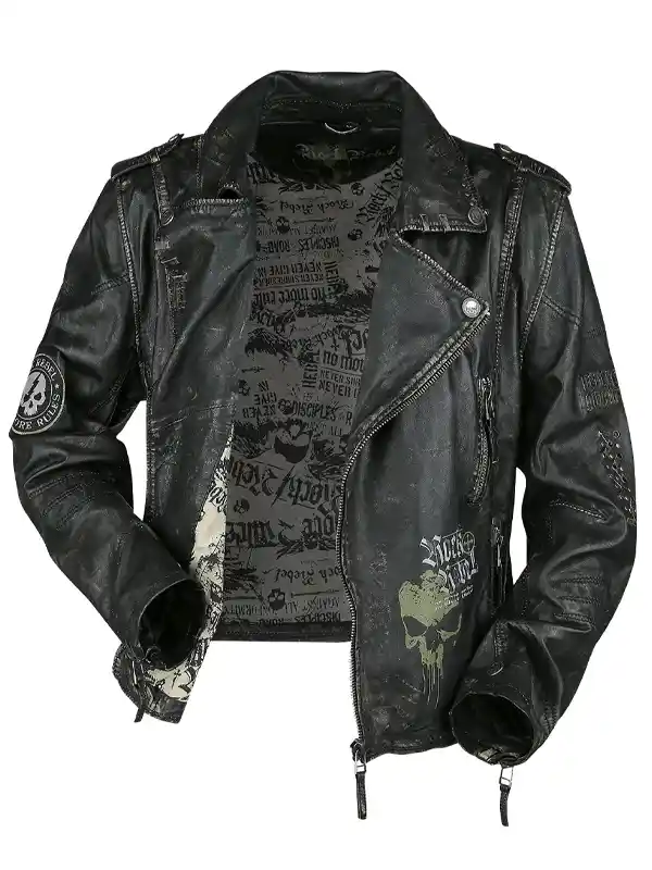 Men’s Biker Style Printed Genuine Black Leather Jacket