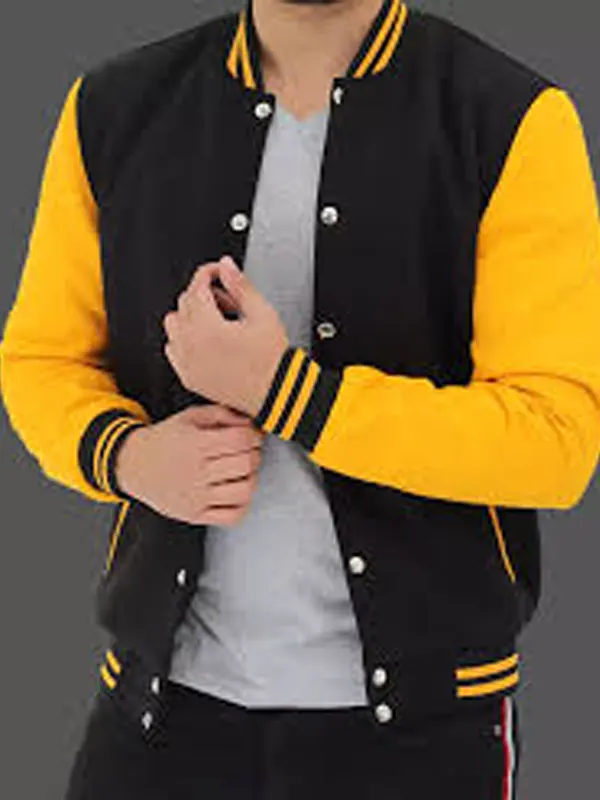 Men’s Baseball Style black and Yellow Varsity Letterman Jacket