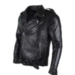 Presenting the stylish and trendy Men’s Brando Black Biker Leather Jacket. This jacket is inspired by an iconic Hollywood celebrity, Marlon Brando. Further, this jacket is designed from faux leather and has a notch lapel collar. Also, it is suitable for both genders. The jacket has a right side pocket and comes with 3 zipper pockets on the front. And 2 inside.
