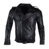 Men’s Black Asymmetric Zipper Brando Biker Leather Jacket