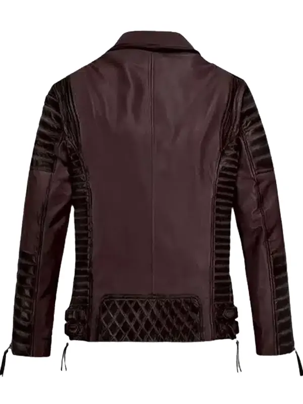 Styled as a classic biker piece, this Mens Burgundy Leather Biker Jacket features genuine leather, soft viscose lining, full length sleeves, zipper style cuffs, lapel style collar, and zipper closure, finished with three outside pockets and two inside pockets. It is ideal for daily wear, riding fashion, and casual street styling.