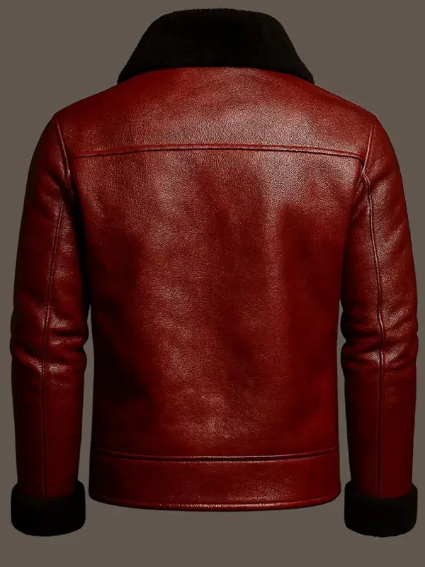This men’s Christmas B3 shearling leather jacket offers rugged warmth with a genuine leather outer shell, thick shearling lining, wide collar, and secure zip closure. Its classic winter look feels perfect for festive adventures and even reminds some shoppers of the Mens Christmas Red Shearling Jacket when comparing holiday styles.