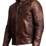 Acquire a top-notch Men’s Distressed Cafe Racer Brown Leather Jacket from our online shop. Made from a human man leather, it has a soft viscose lining. Also, it has the quilt patterns on the shoulders. Moreover, it comes with a round collar and has 4 pockets, 2 at the chest and 2 at the sides.